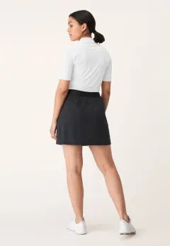 Röhnisch Chella Skort on A-mallinen golfhame joka on valmistettu jakardikankaasta jonka verkkomainen pinta huolehtii ilmanvaihdosta. Kevyt, joustava ja nopeasti kuivuva kangas. Tämä malli on sortsihame eli golfhame sisäpuolella olevilla shortseilla, jotka takaavat täydellisen vapauden liikkua. Hameessa on kaksi vetoketjullista etutaskua ja yksi sisäsortsien tasku.