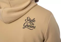 Säädettävä kiristysnyörillinen huppu tarjoaa lisäsuojaa tuulta ja viileää säätä vastaan, mikä tekee tuotteesta käytännöllisen erityisesti vaihtelevissa olosuhteissa. Selkeä siluetti ja huoliteltu viimeistely takaavat, että huppari toimii yhtä hyvin golfkentällä kuin vapaa-ajassa.