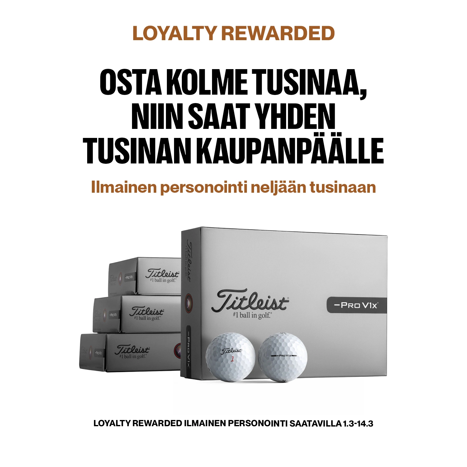 Titleist Loyalty Rewarded - Pro V1 painatuksella 3+1 tusinaa